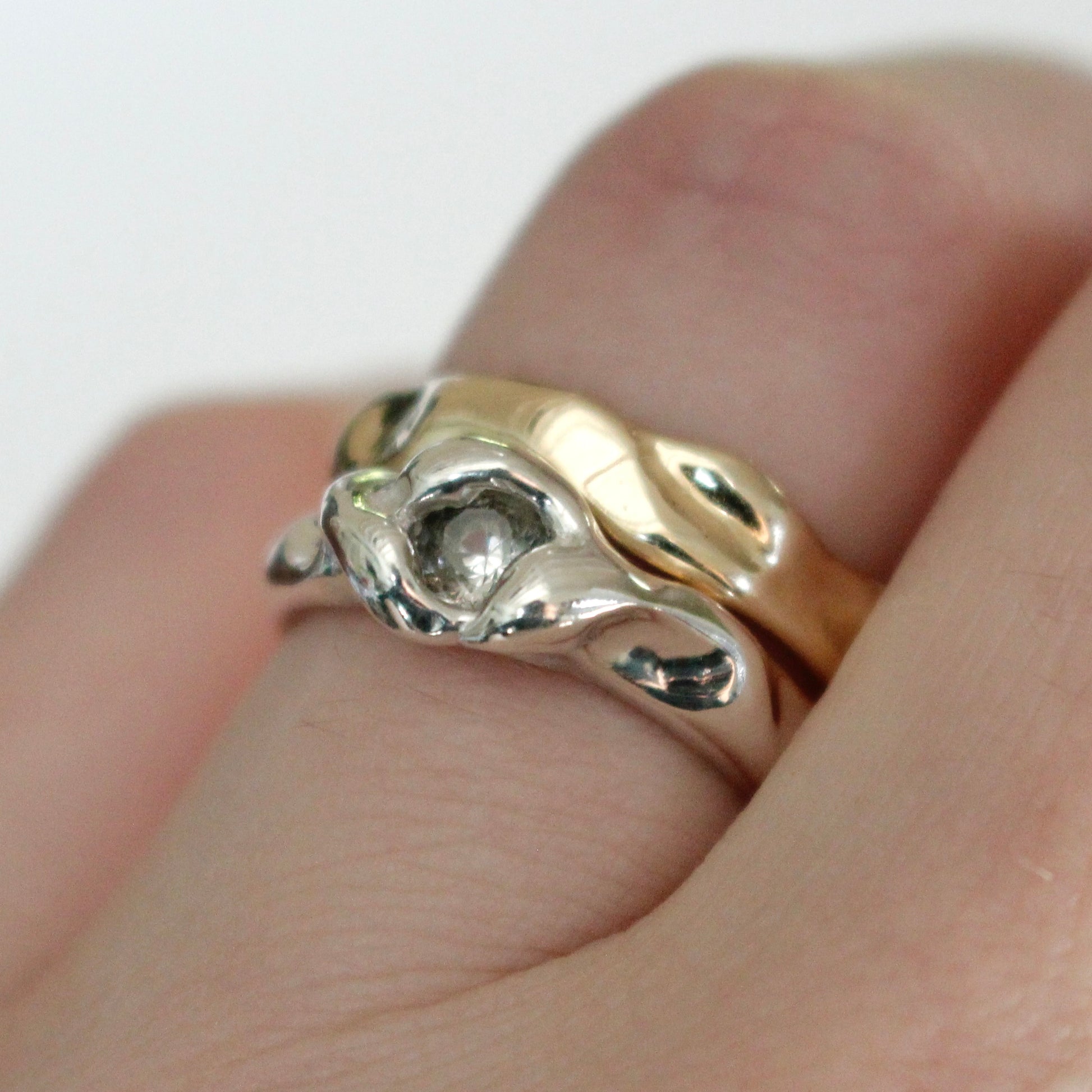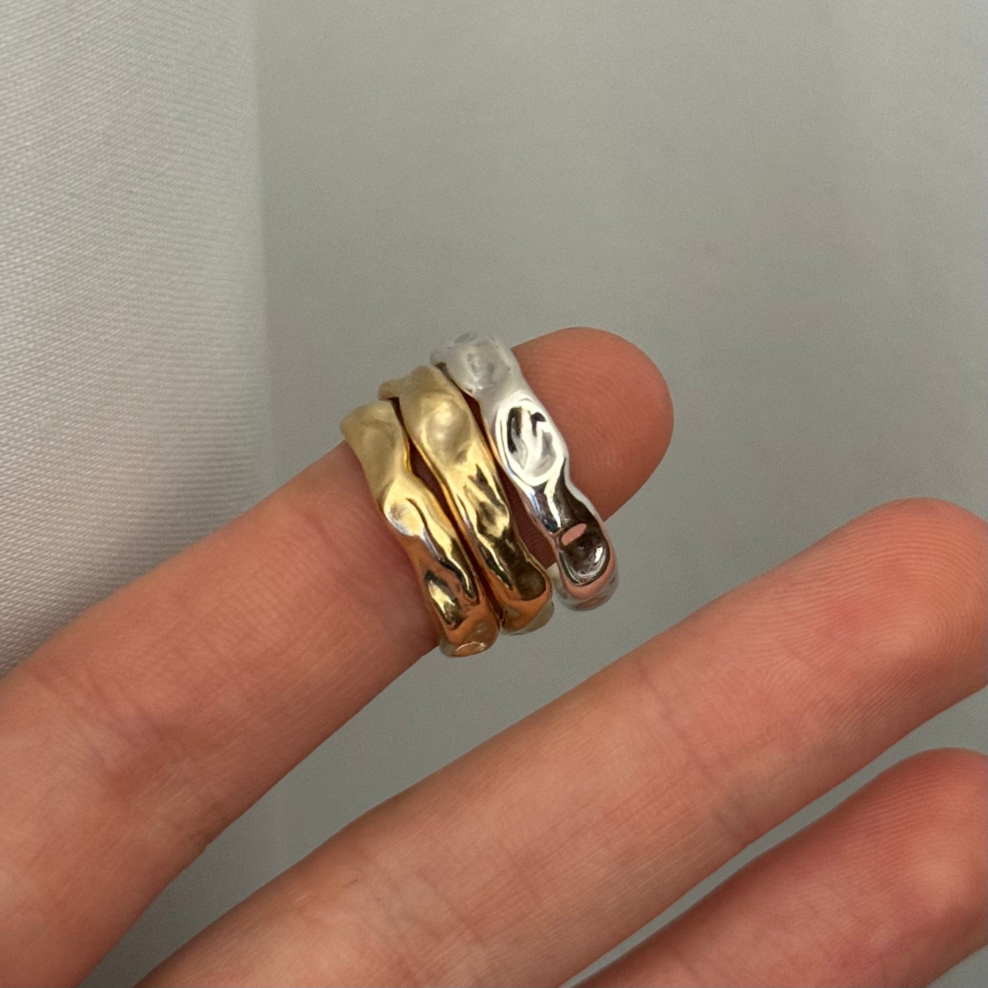 The melt band is available in sterling silver or solid 9ct gold or 18ct gold.