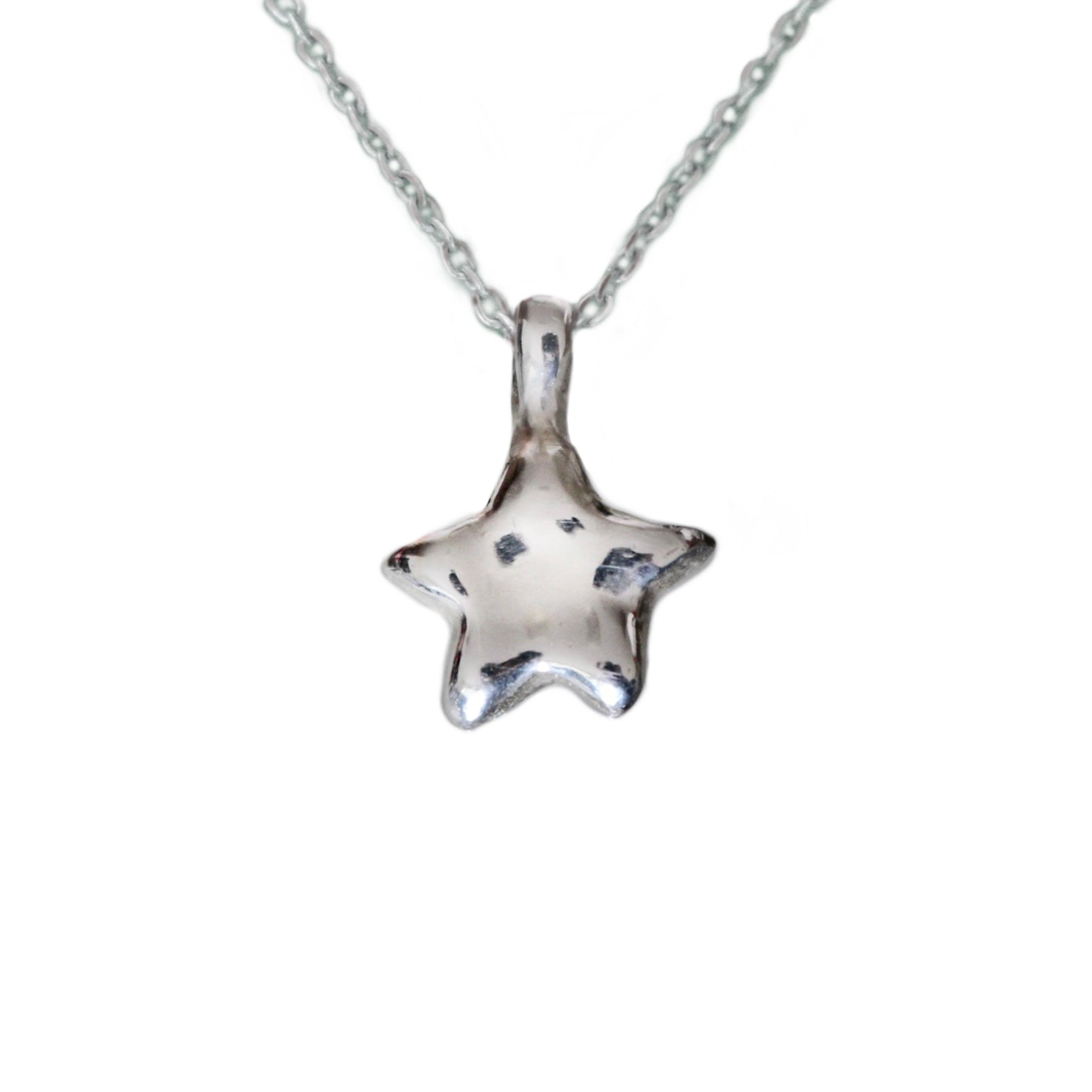 The Star Necklace is a handmade piece crafted in sterling silver, designed to complement the star ring as part of the collection. Each star is is polished to a high shine to give them that molten reflective look.